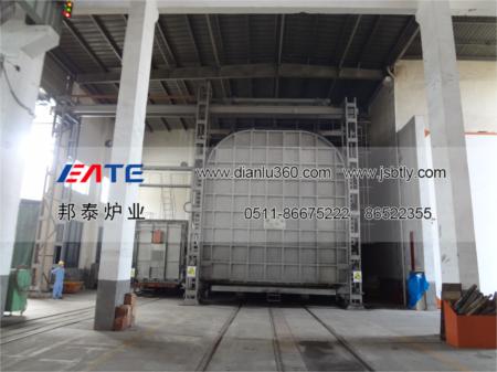 2.燃氣臺車爐主要由爐體、爐襯、爐門、自行走臺車系統(tǒng)、高速燃燒系統(tǒng)、管路及其壓力自控系統(tǒng)、爐壓自控及排煙余熱回收系統(tǒng)、密封裝置、溫度控制及記錄系統(tǒng)、計算機系統(tǒng)等主要部分組成。設備以各式燃燒氣體為介質(zhì),通過的高速燒嘴燃燒加熱,溫度1250℃。