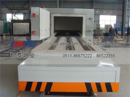 臺車是承載工件及運(yùn)轉(zhuǎn)的平臺,主要有臺車鋼結(jié)構(gòu)、臺車耐火隔熱層、臺車行走機(jī)構(gòu)、加熱元件、爐底板等部分組成。